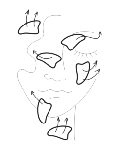 Masaż kamieniem Gua Sha opiera się przede wszystkim na ruchach odśrodkowych, to znaczy prowadzących od środka twarzy na zewnątrz, w kierunku węzłów chłonnych.